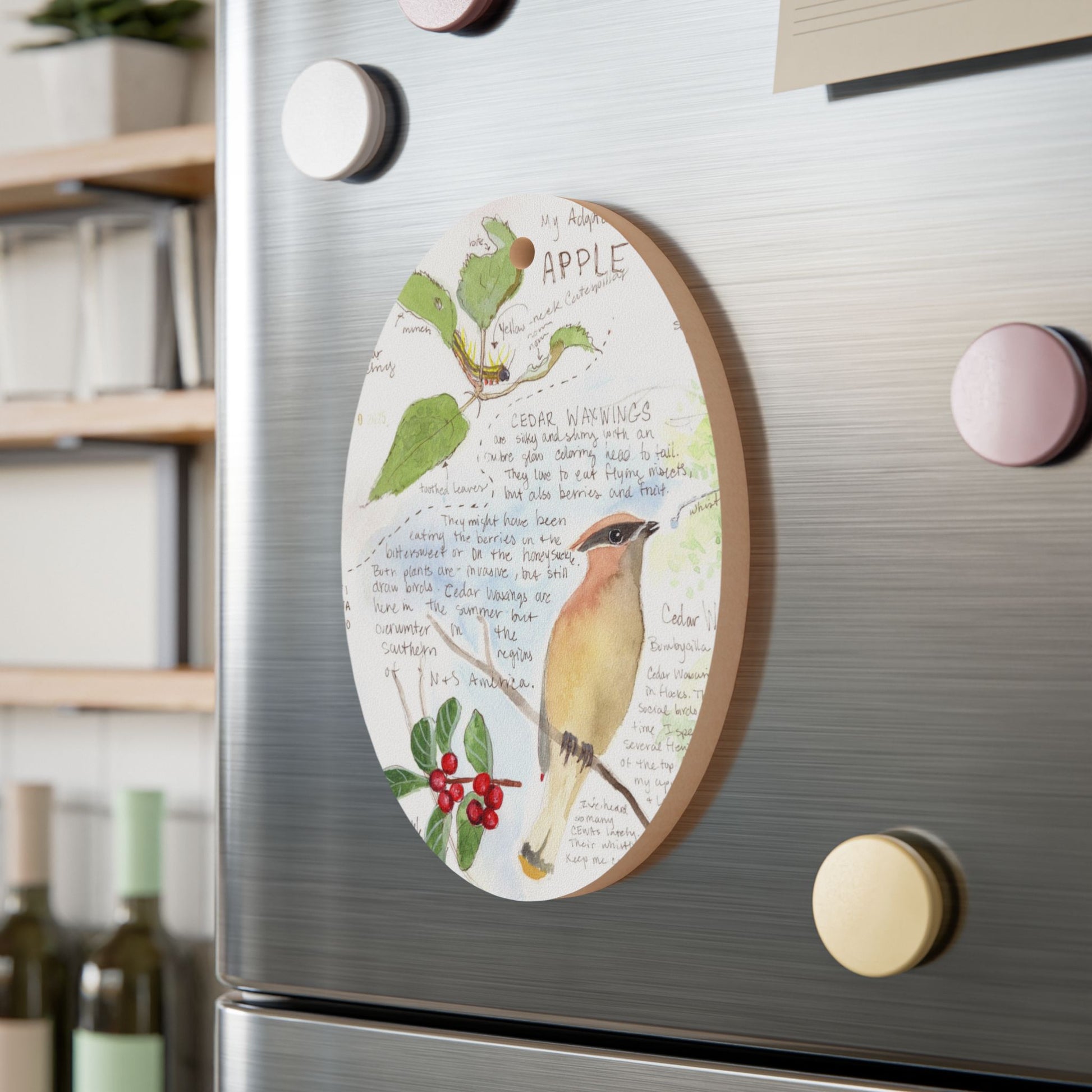Cedar Waxwing Nature Journal Page Wooden Ornament