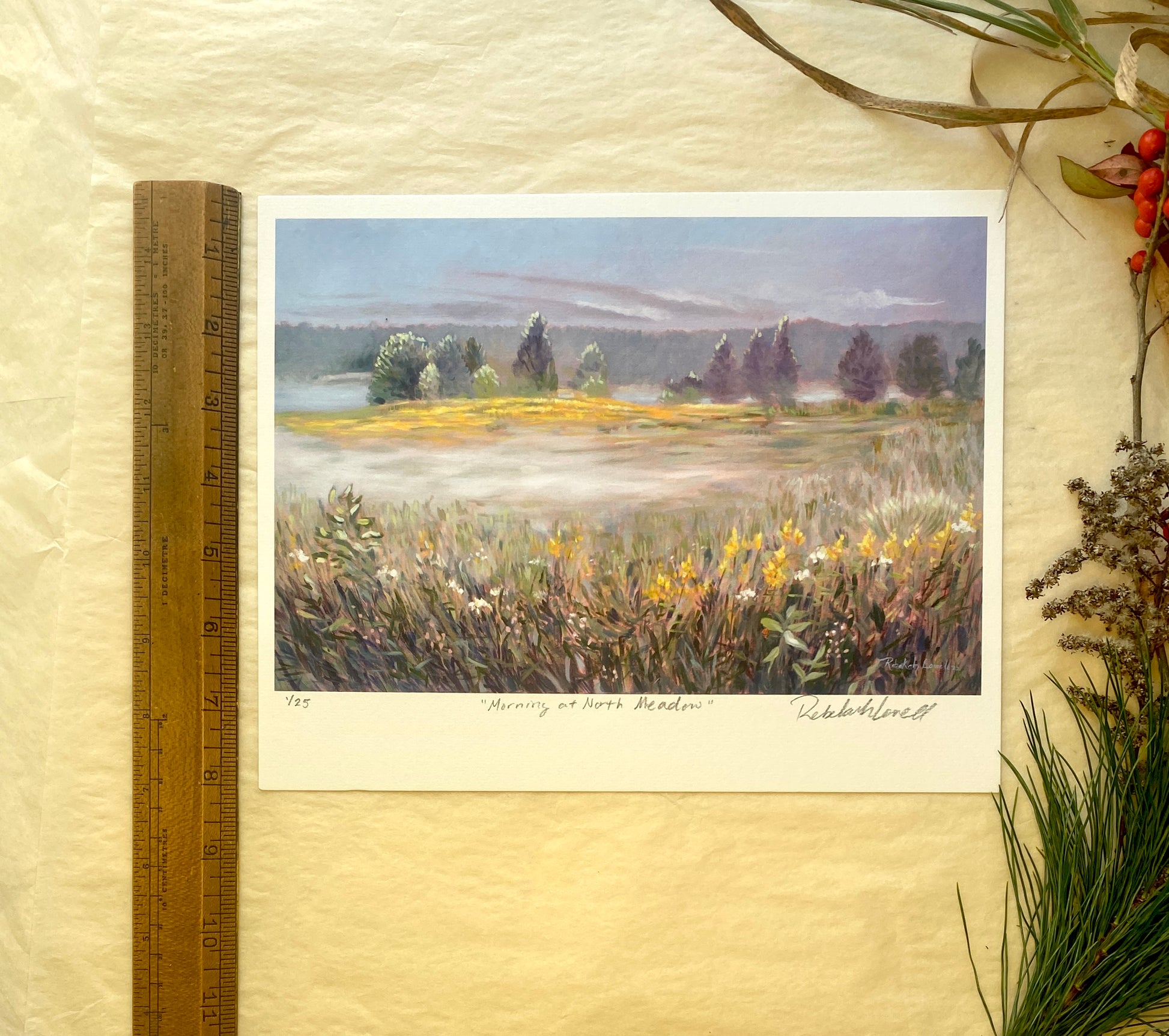 Archival PRINT of the painting "Morning at North Meadow" created for Maine Audubon's Brush with Nature event, originally painted in oils. Inspired by my love of fields and wild spaces.