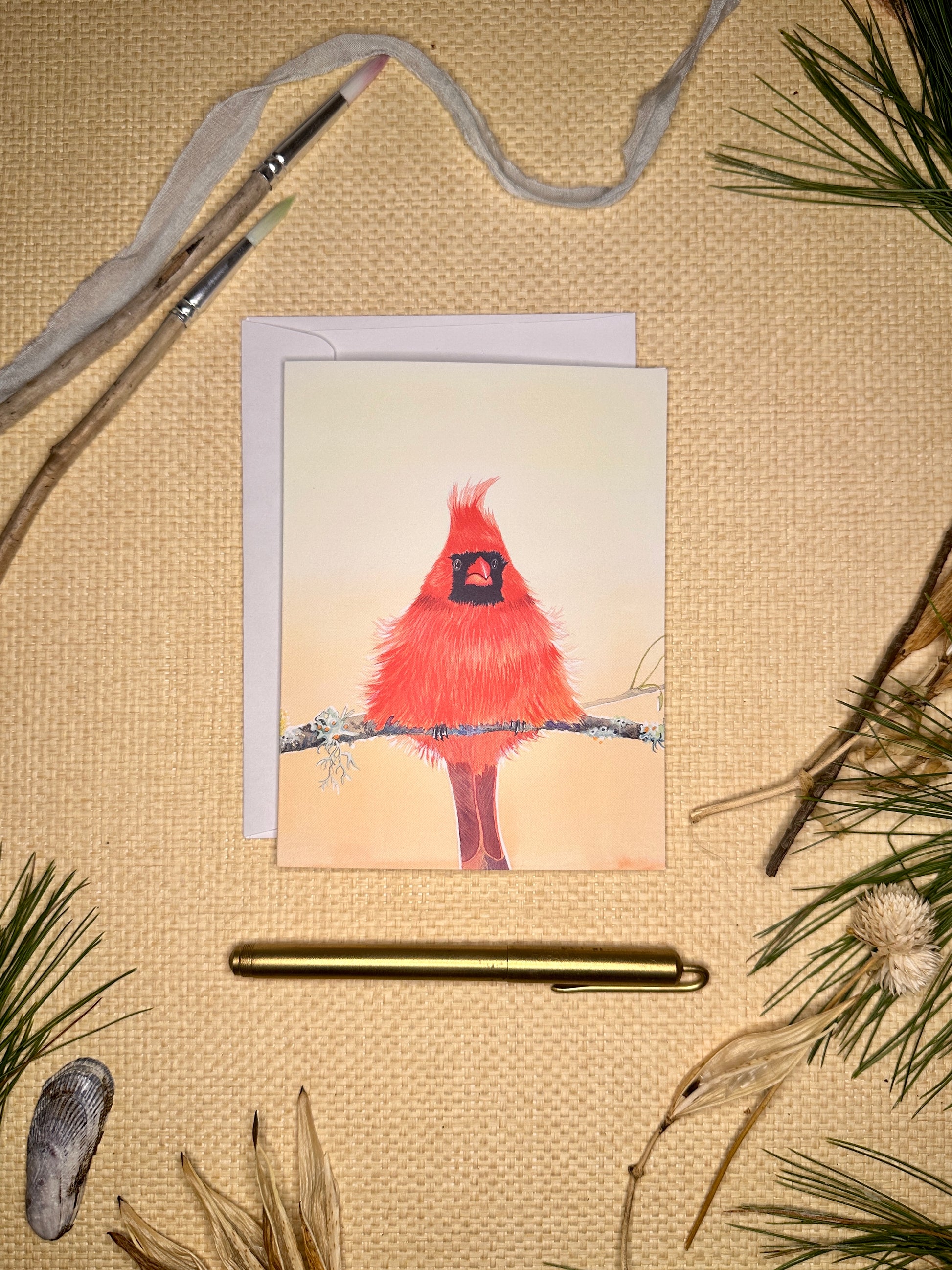 Blank notecard featuring a Northern Cardinal from my picture book, Catching Flight.