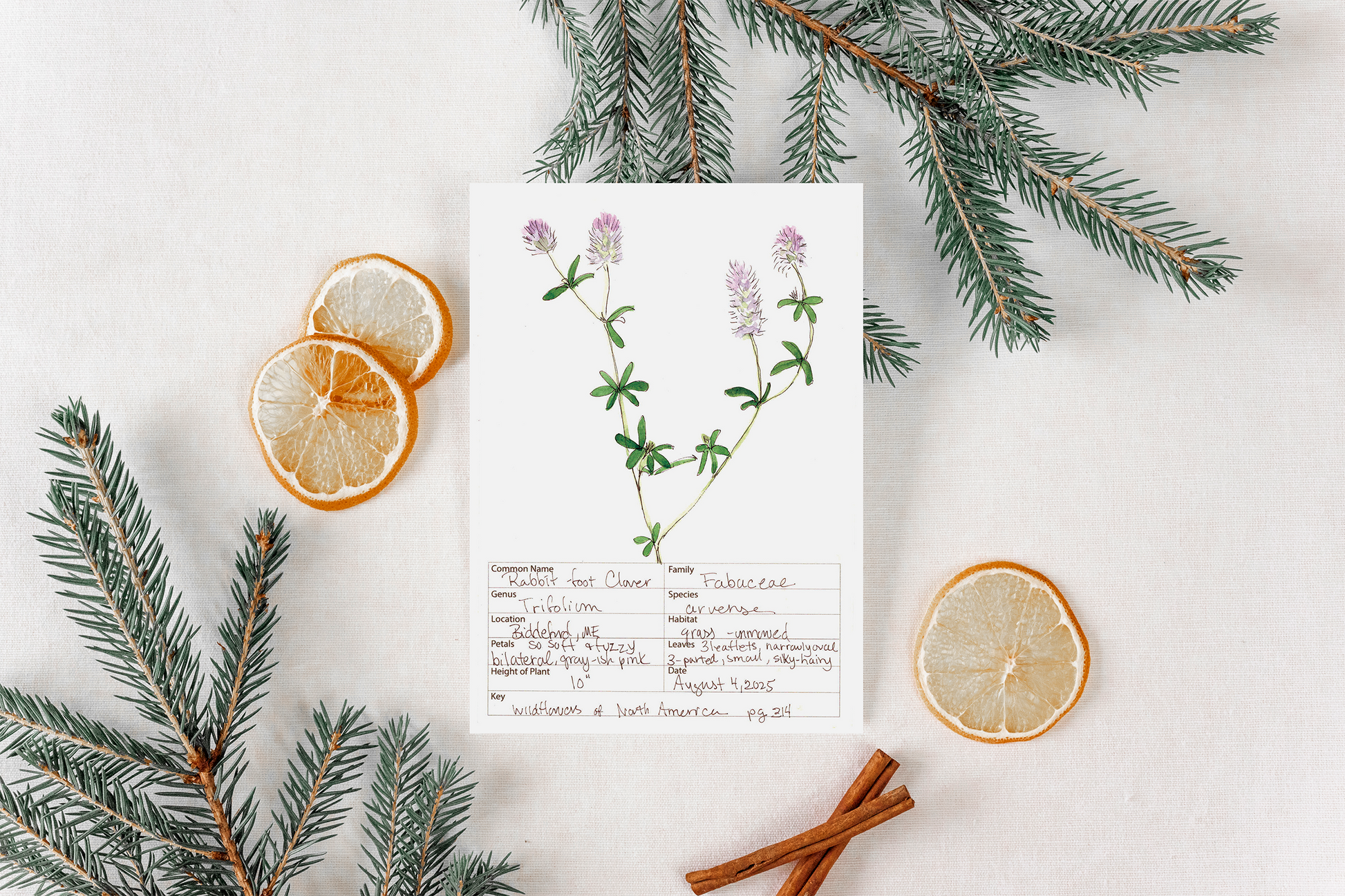 This Rabbit Foot Clover specimen card print will delight the flower lover in your life. I drew this flower in sepia micron pen and painted in watercolors. Printed on fine art archival paper in my studio. 5"x7" unframed
