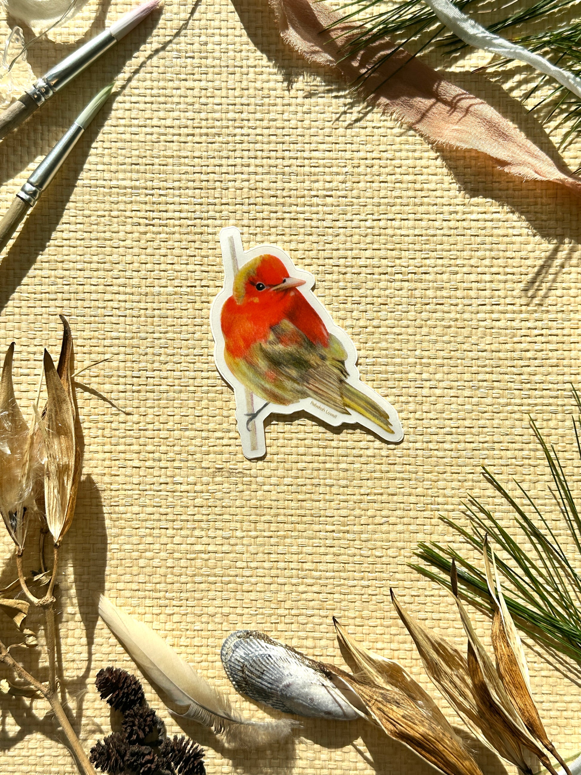 Summer Tanager Clear-Edged Vinyl Decal Bumper Sticker